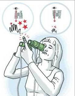 အတိုင်း binoculars မှန်ဘီလူး ကို ပြောင်းပြန်လှန်ပြီး ကြည့်ပါ ။